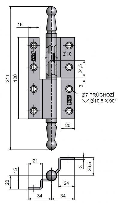 K otočnému spojení dveří s polodrážkou a dřevěné zárubně. Čep je opatřen ozdobným ukončením. Závěs je vhodný při rekonstrukcích starých dveří. Doporučujeme ho přišroubovat až po provedené povrchové úpravě dveří a zárubně.
