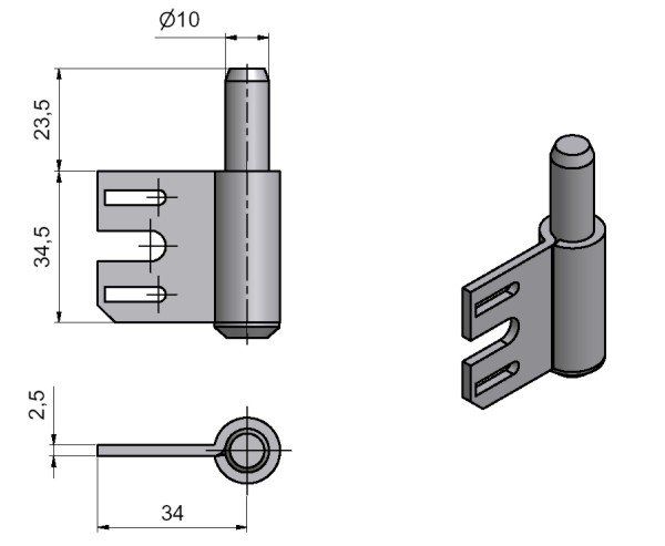 Závěs (spodní díl) je určen do ocelových zárubní s vložkou 34 OZ. Připevňuje se pomocí šroubu vložky.