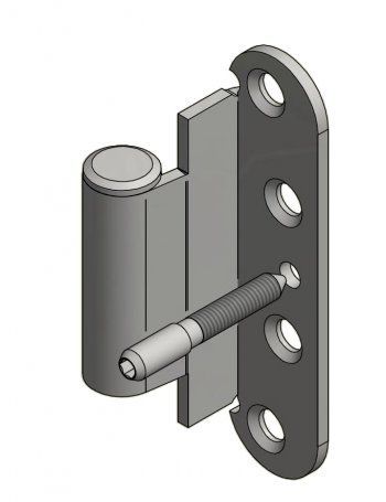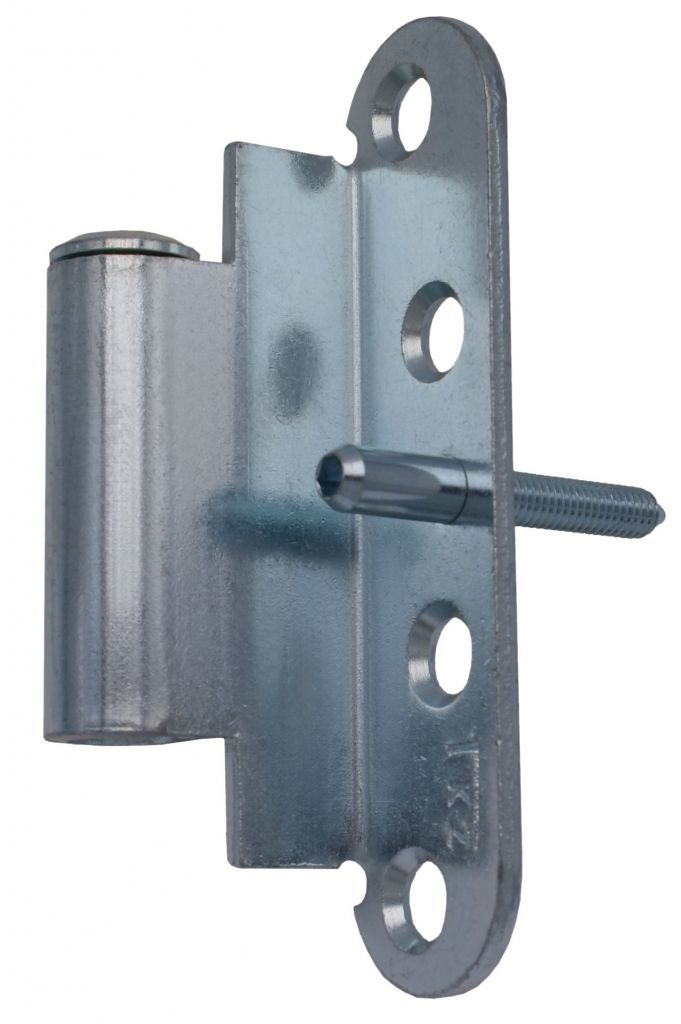 K otočnému spojení dveří s polodrážkou a zárubně. Provedení z materiálu tloušťky 3 mm a čep zabraňují vysazení dveřního křídla.