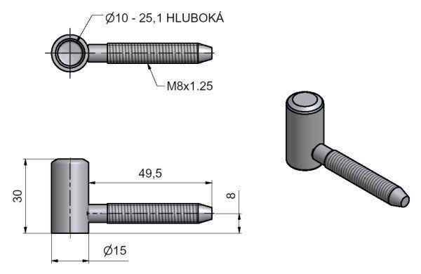 Popis produktu Závěs dveřní 60/10 HD M8 Ni