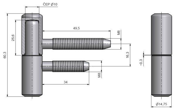 Závěs dveřní 60/10 M8/50 M8/34,5 Zn bílý