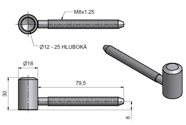 Závěs dveřní 60/12 HD M8x80 ZN bílý
