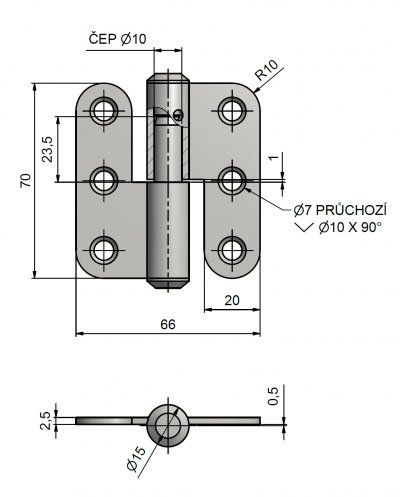 K otočnému spojení dveří bez polodrážky se zárubní. Díky materiálu NEREZ závěs (pant) doporučujeme pro prostory se zvýšeným požadavkem na odolnost, ideální pro dveře sanitárních příček. Ve vrchním dílu závěsu je mazací otvor.