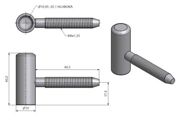 Vrchní díl závěsu - do dřevěného dveřního křídla s polodrážkou. Zakování se provádí po dokončení povrchové úpravy dveřního křídla.