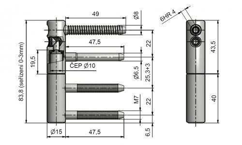 Závěs dveřní trio 15 22/M7 PH Zn bílý