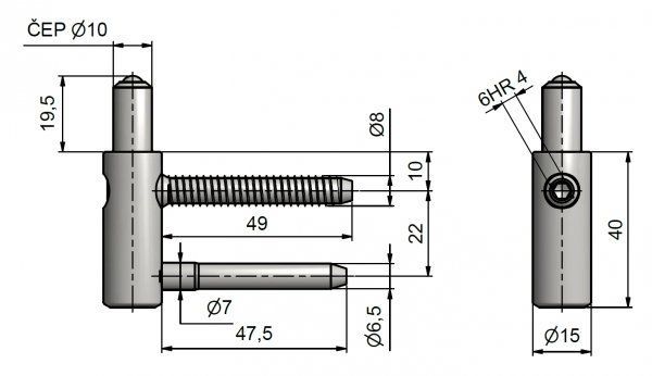 Spodní díl závěsu TRIO pro dřevěnou zárubeň. Ve spojení s vrchním dílem je závěs seřiditelný ve třech směrech. lze je překrýt ozdobnými plastovými či kovovými návleky.