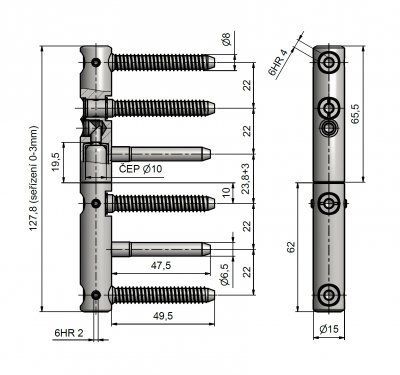 Seřiditelný závěs určený pro interiérové a vchodové dveře s polodrážkou. Vhodný pro dřevěnou zárubeň. Jeho předností je seřiditelnost ve 3 směrech a vysoká únosnost! - 120 kg / 3 závěsy. Na doladění vzhledu Vám můžeme zakázkově (po dohodě) zhotovit kovové návleky.