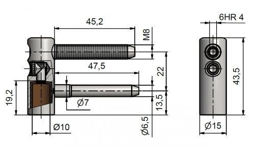 Vrchní díl závěsu TRIO 15 do ocelových dveří. V kompletu se spodním dílem TRIO 15 do ocelové zárubně je seřiditelný ve směrech. Závěs lze doladit plastovými nebo kovovými návleky.