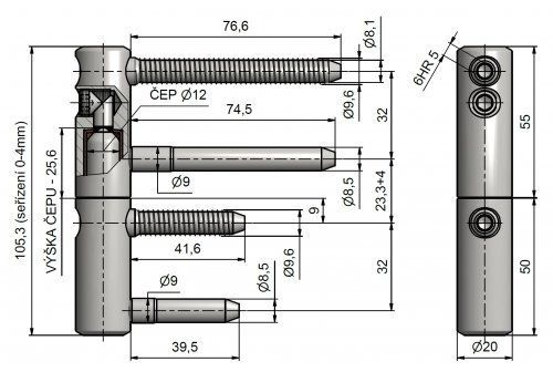 Kompletní závěs řady TRIO umožňující seřízení dveřního křídla ve třech směrech. Díky prodlouženým svorníkům se hodí na protipožární dveře. Závěs je možno doplnit ozdobnými návleky.