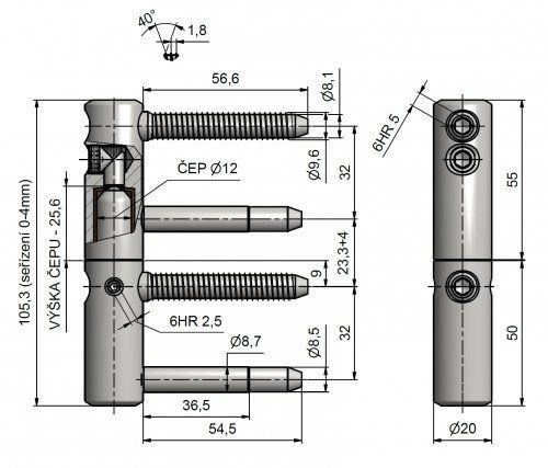 Kompletní závěs řady TRIO umožňující seřízení dveřního křídla ve třech směrech s deklarovanou požární odolností (viz prohlášení o vlastnostech níže). Pojistný kolíček zabraňuje vysazení pantu. Závěs je možno doplnit ozdobnými plastovými nebo kovovými návleky.
