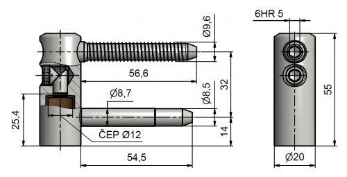 Vrchní díl závěsu dveřního TRIO 20 pro dřevěné dveře - do interiéru i na vchodové dveře. Spolu se spodním dílem je seřiditelný ve třech směrech. Závěs lze doladit dekorativními plastovými či kovovými návleky.