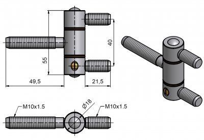 Závěs slouží k otočnému spojení dřevěných nebo kovových dveří s dřevěnou nebo kovovou zárubní. Čep je zajištěn proti vysunutí ze dvou stran zajišťovacím šroubem.