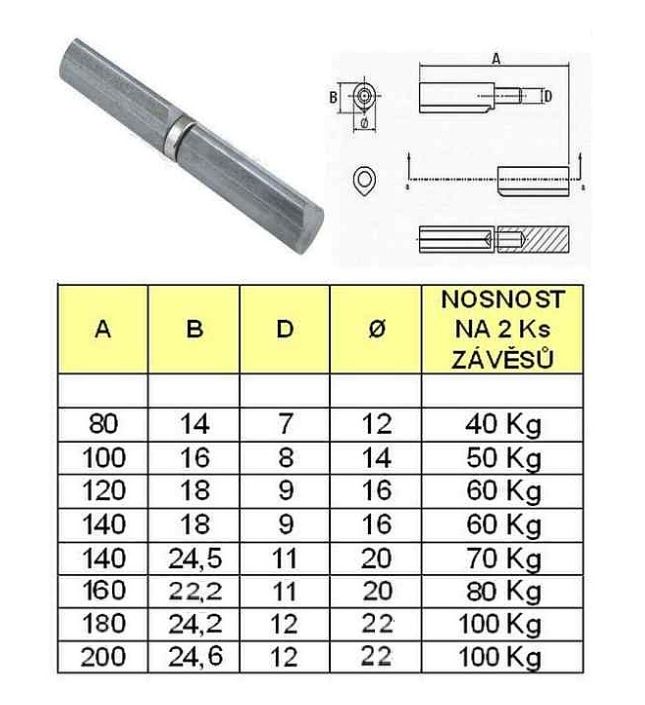 Závěs kov.100x14mm ČEP 8mm k navař.písk.