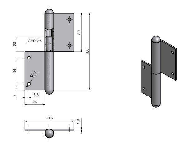 Nosný závěs pro otočné spojení okenního křídla s rámem. Povrchové úpravy zhotovím po dohodě.