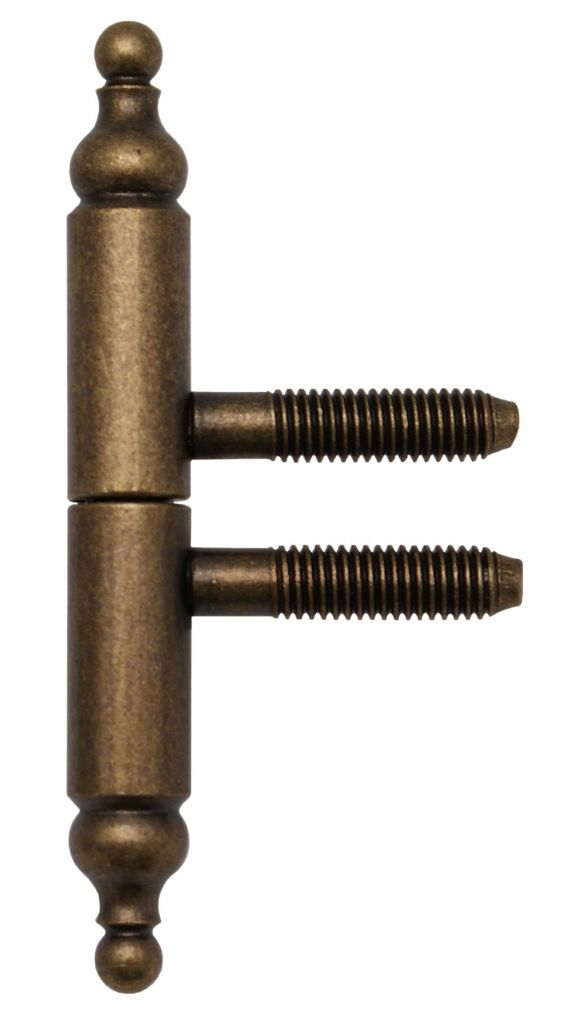 Závěs s ozdobným ukončením čepu ke spojení okenních křídel a rámu.