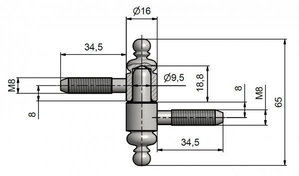 Závěs s ozdobným ukončením čepu. Nosný závěs okenních křídel