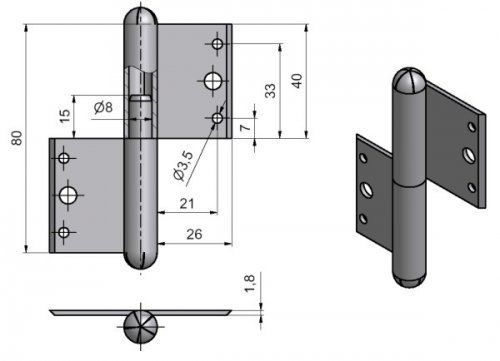 Nosný závěs pro otočné spojení okenního křídla s rámem.