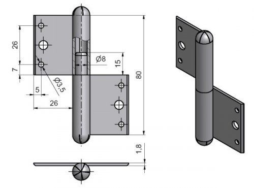 Nosný závěs pro otočné spojení okenního křídla s rámem.