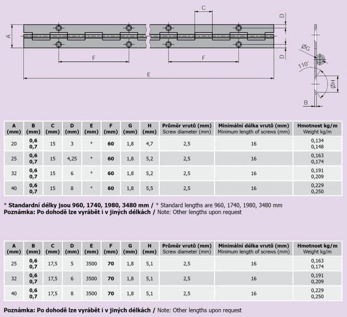 Popis produktu Piánový pant Ms 20x0,6x900/60 10083804
