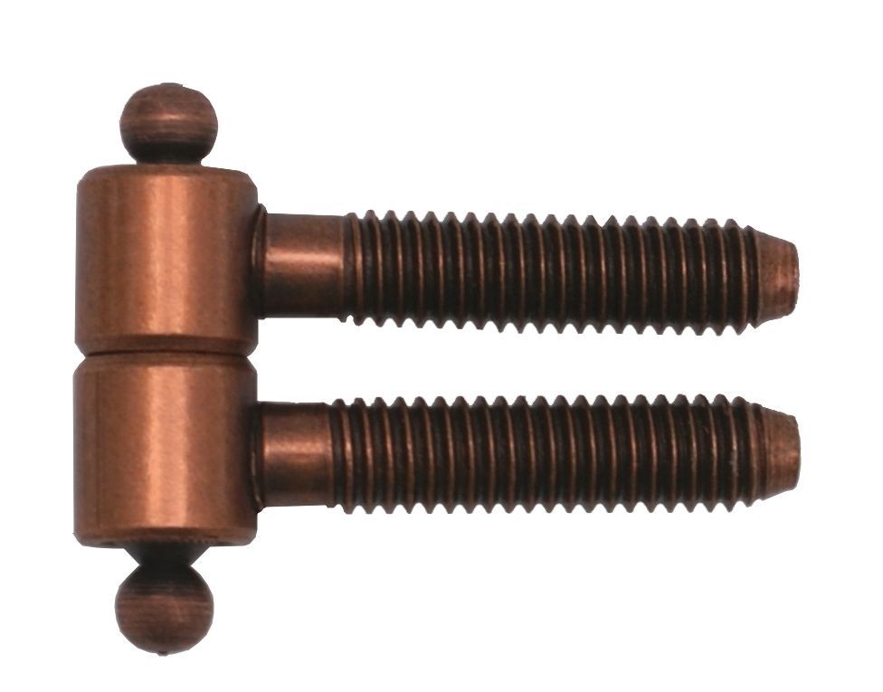 Závěs k zašroubování do dřevěného nábytku s ozdobným ukončením čepu.
