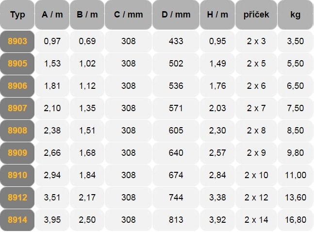 Štafle Al 2x3 příček 100cm